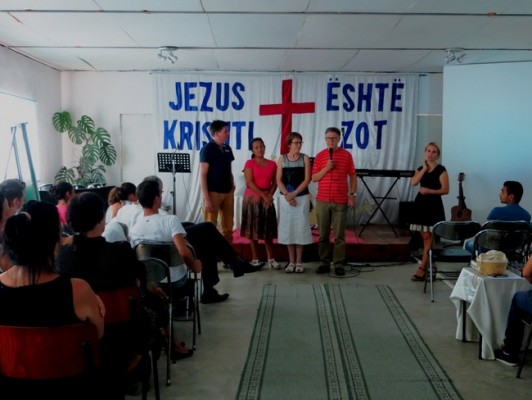Vandaag om weer vroeg opgestaan met Ronald en rond 9:30 werden we opgehaald om mee naar de kerk te gaan. We werden hartelijk ontvangen en we merkten dat dat de mensen echt naar de kerk gingen voor een ontmoeting met God. Omdat wij er nu op bezoek waren mochten we ook vertellen wie we waren en wat we kwamen doen. Zo mochten we vertellen van hoe wij geloven dat God ons het land Albanië op onze weg heeft gebracht en dat we graag als Nederlanders willen laten zien dat we de Albanese christenen willen laten zien dat we aan hen denken, maar ook dat we er voor hen willen zijn door onder andere dingen te organiseren voor gehandicapten en ouderen. Nadat we ons verhaal verteld hadden heeft pastor Dag en een aantal andere personen met ons samen nog gebeden.